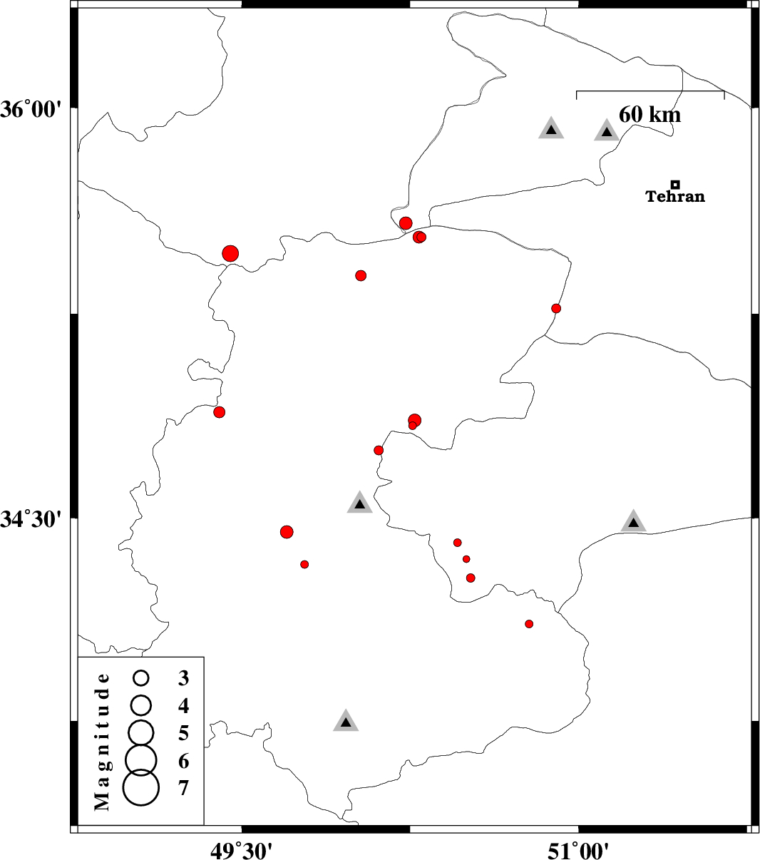 | 2012/03/25 | 05:40:40.5 | 10:10:40.5 | 34.33 | 49.78 | 14 | ML1.6 | Markazi Province, 28 km North of Arak | ||