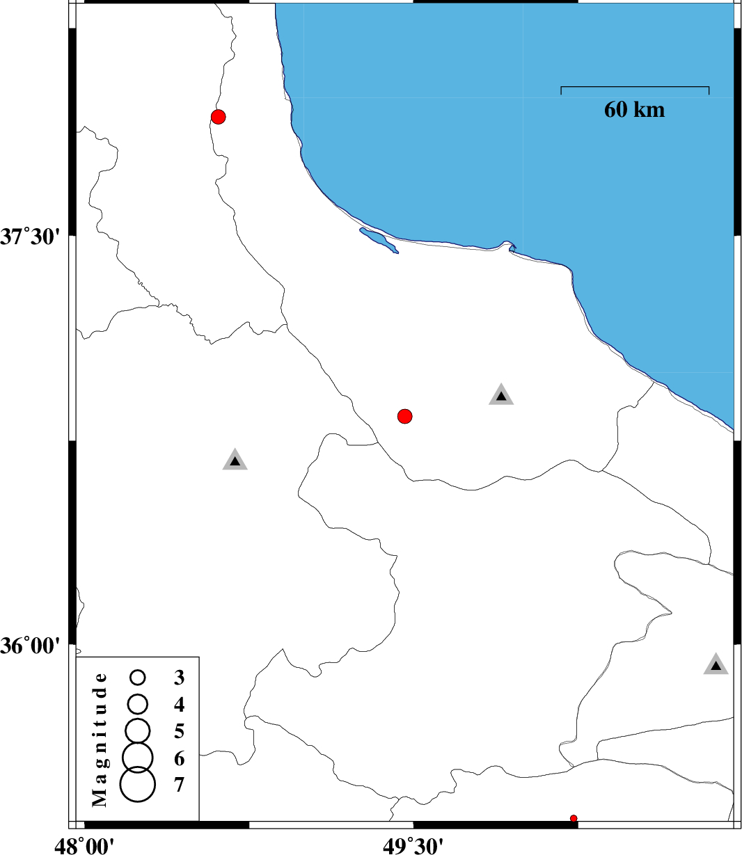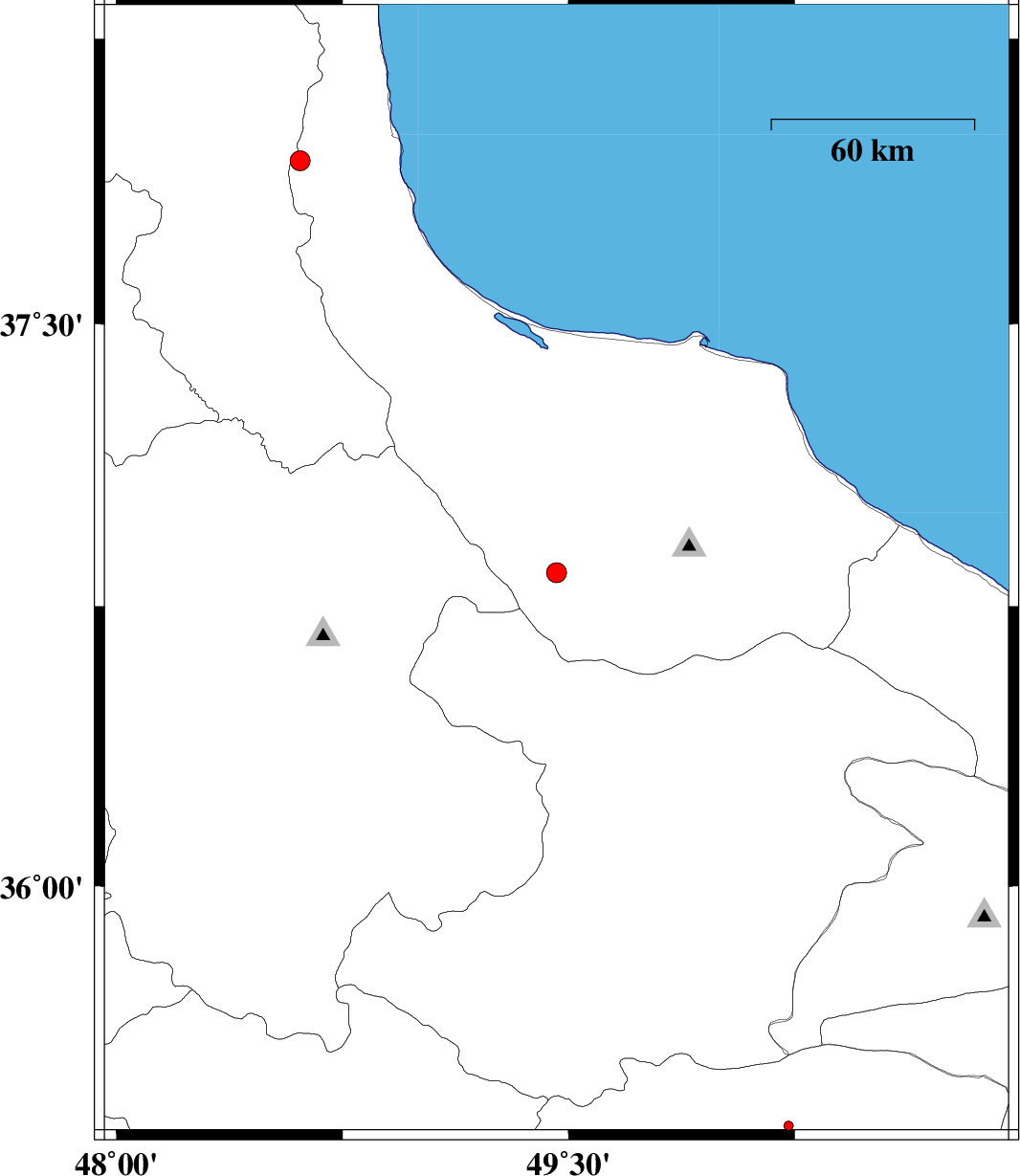 | 2012/04/04 | 01:27:00.9 | 05:57:00.9 | 37.93 | 48.61 | 14 | ML2.9 | Gilan Province, 34 km North of Khalkhal |