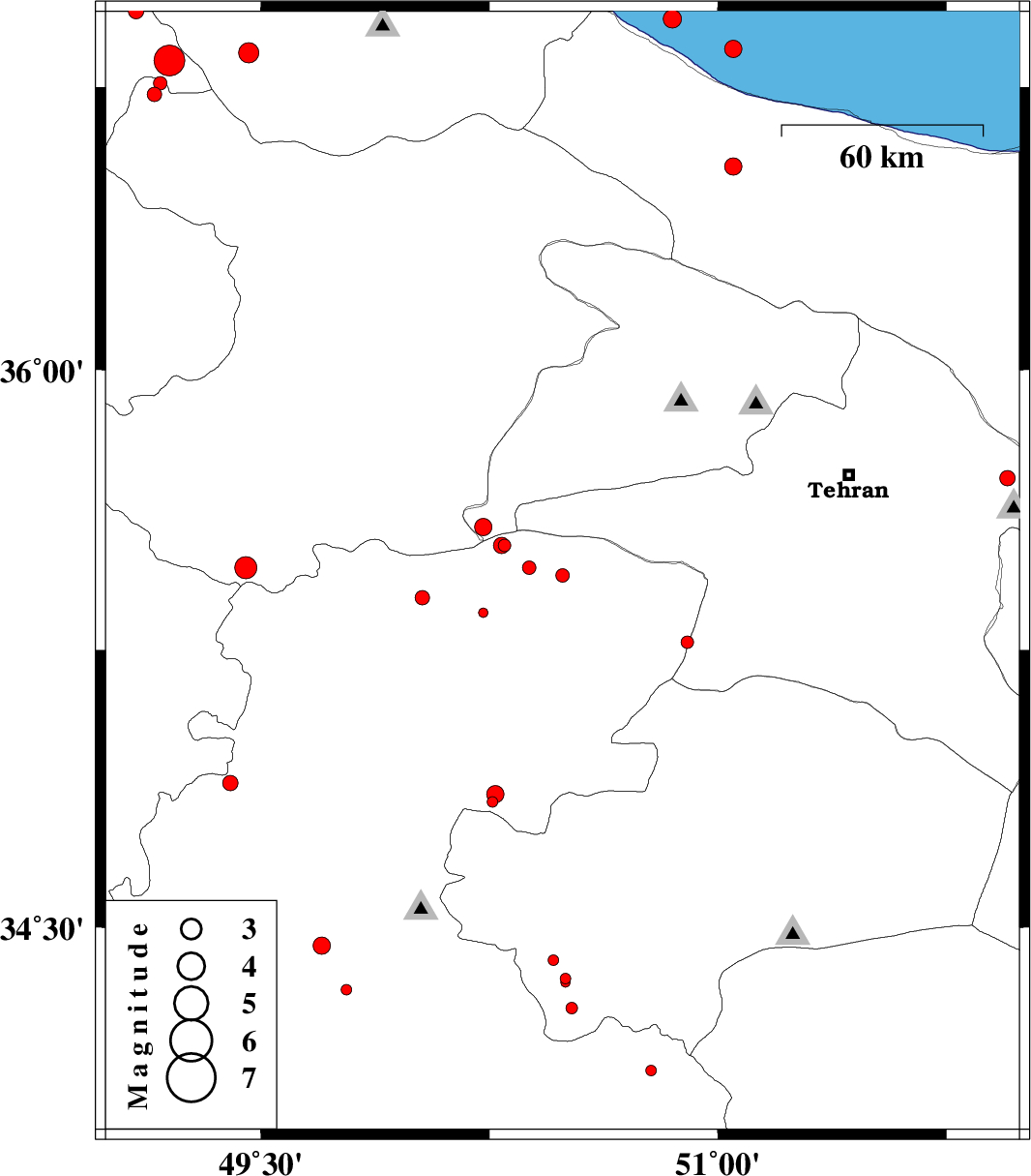 | 2012/03/10 | 19:43:50.7 | 23:13:50.7 | 35.71 | 51.95 | 9 | ML2.3 | Tehran Province, 11 km West of Damavand | ||