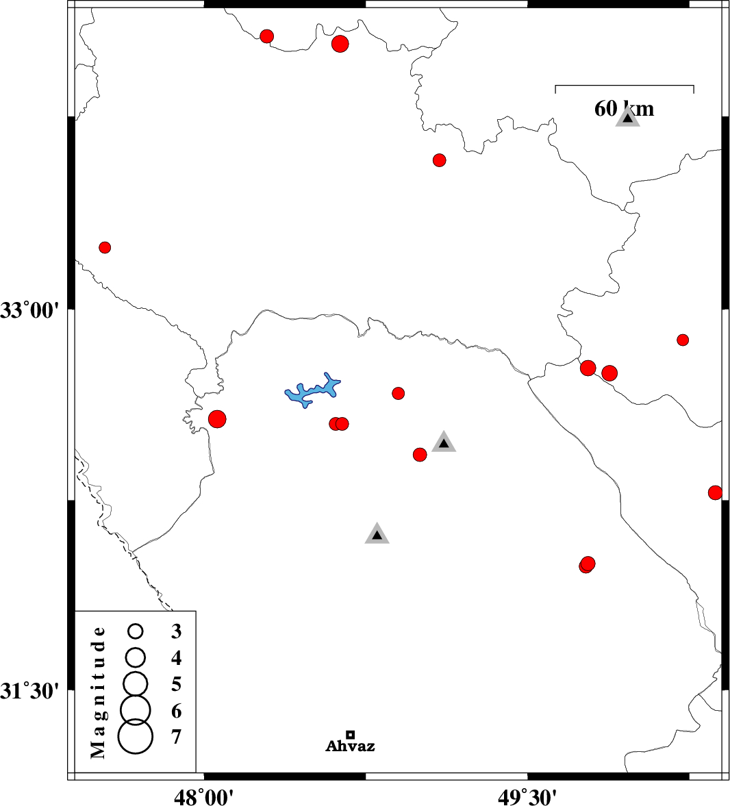 | 2012/03/22 | 06:00:19.8 | 10:30:19.8 | 32.57 | 48.06 | 43 | ML3.6 | Khoozestan Province, 30 km North-West of Andimeshk |