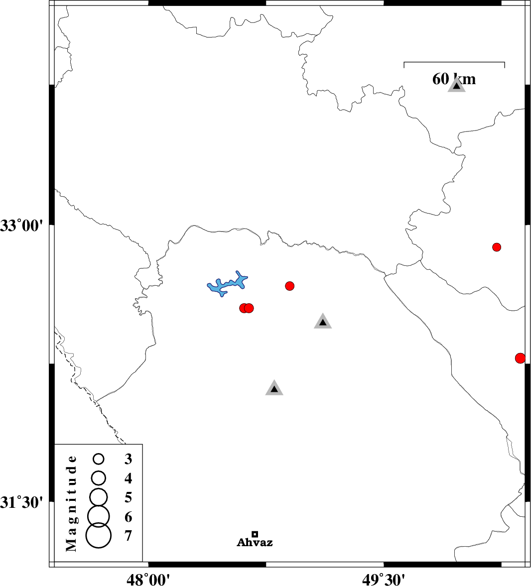 | 2012/04/18 | 14:22:02.1 | 18:52:02.1 | 32.55 | 48.64 | 15 | ML2.7 | Khoozestan Province, 29 km East of Andimeshk | ||