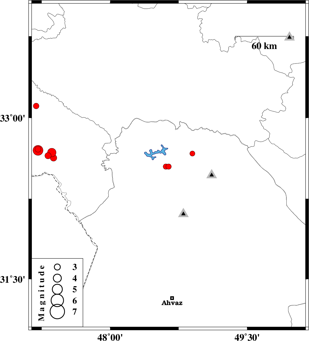 | 2012/04/18 | 09:04:01.3 | 13:34:01.3 | 32.55 | 48.61 | 14 | ML2.7 | Khoozestan Province, 26 km East of Andimeshk | ||
