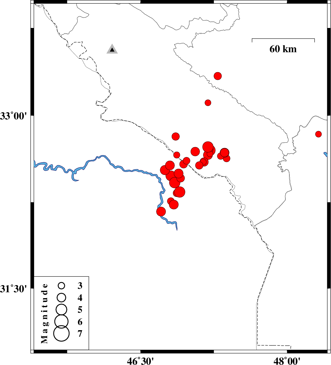 2012/04/20 01:48:42.9 06:18:42.9 32.647.1533 ML4 Ilam Province, 15 km West of Dehloran