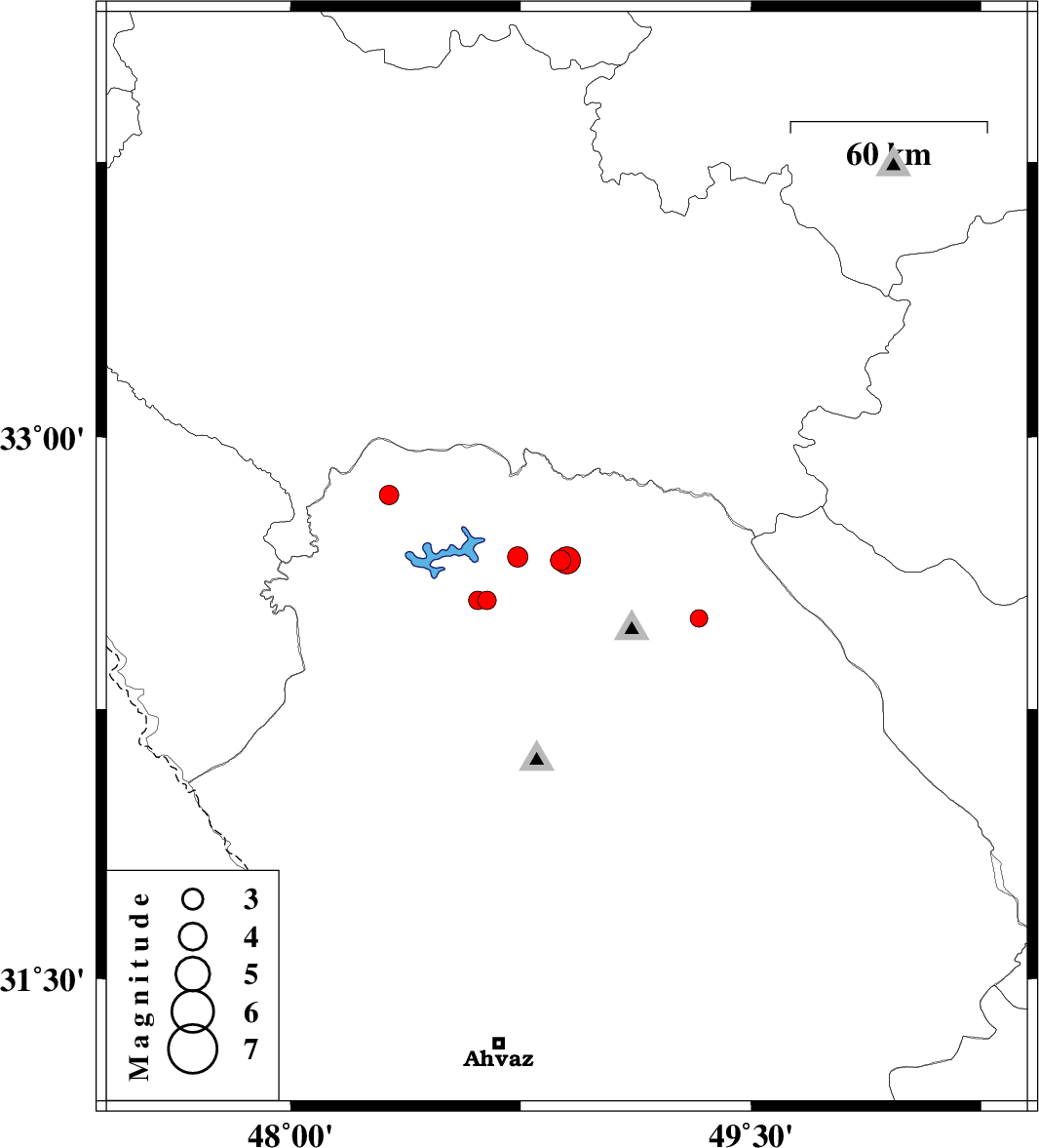 | 2012/04/18 | 05:11:53.1 | 09:41:53.1 | 32.67 | 48.9 | 15 | ML2.6 | Khoozestan Province, 37 km North-West of Lali |