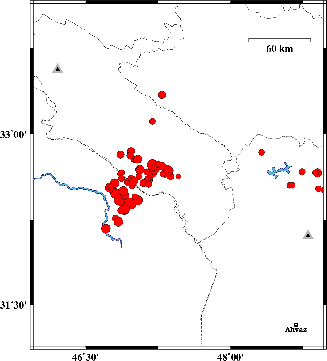| 2012/04/23 | 15:26:28.9 | 19:56:28.9 | 32.61 | 46.87 | 14 | ML3 | Iraq, 38 km West of Dehloran | ||
