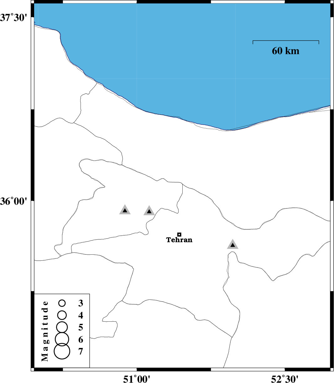 | 2012/04/26 | 07:12:27.6 | 11:42:27.6 | 36.11 | 51.46 | 14 | ML2 | Tehran Province, 34 km North of Tajrish |