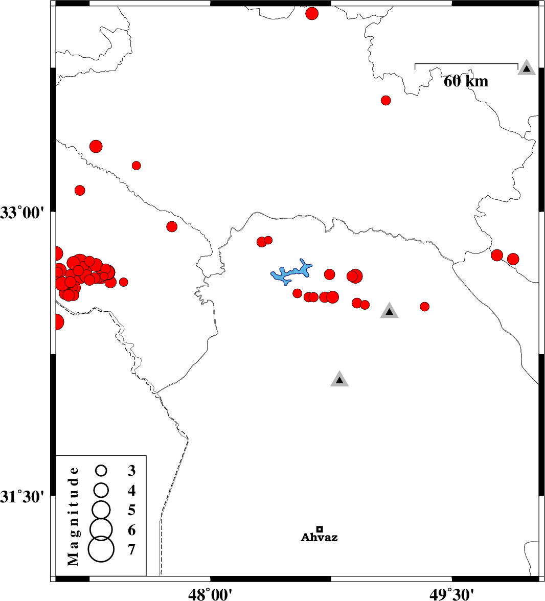 | 2012/04/20 | 01:48:42.9 | 06:18:42.9 | 32.6 | 47.15 | 33 | ML4 | Ilam Province, 15 km West of Dehloran | ||