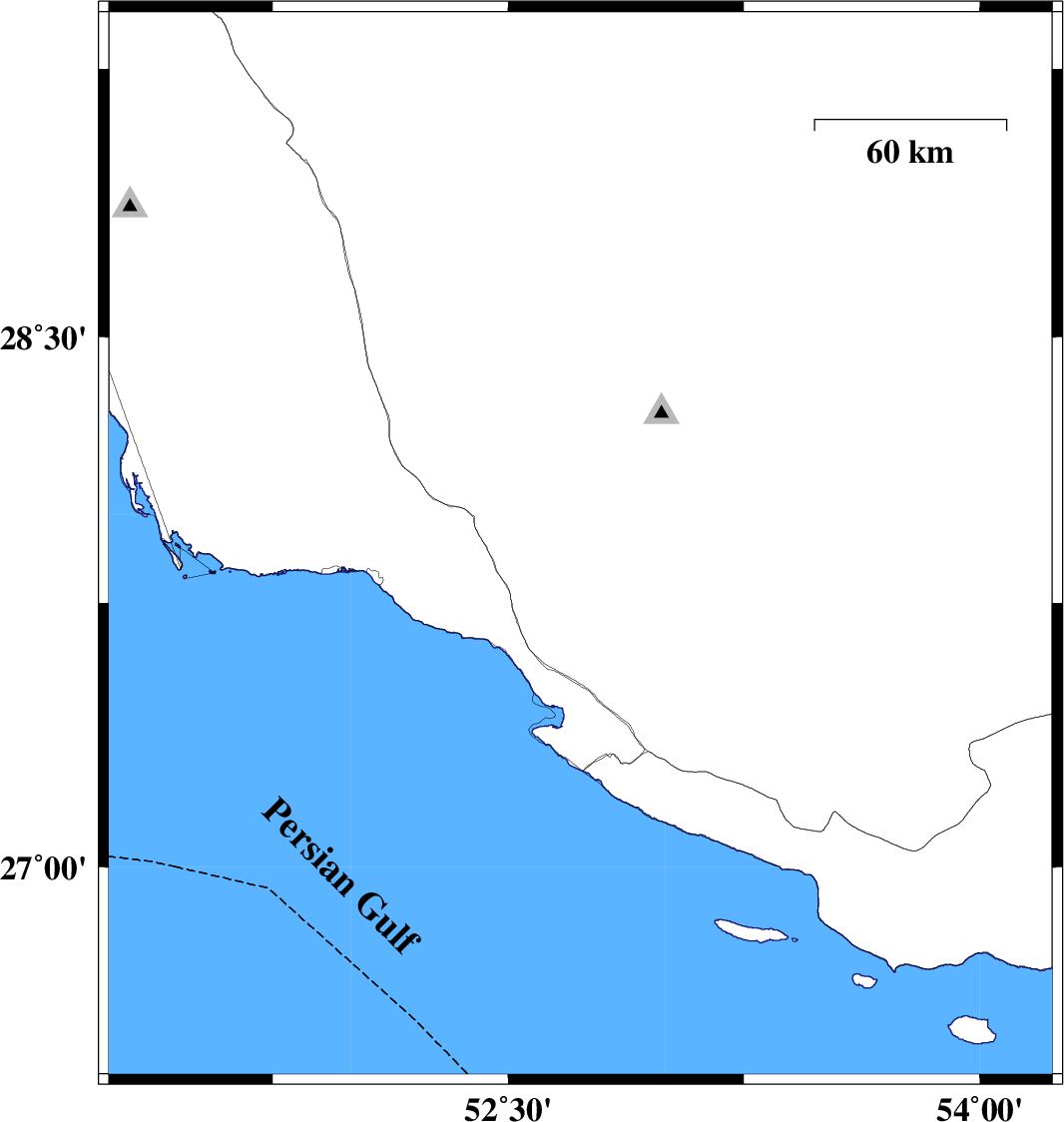 | 2012/04/30 | 11:53:03.3 | 16:23:03.3 | 27.91 | 52.73 | 14 | ML3.9 | Fars Province, 42 km East of Jam | ||