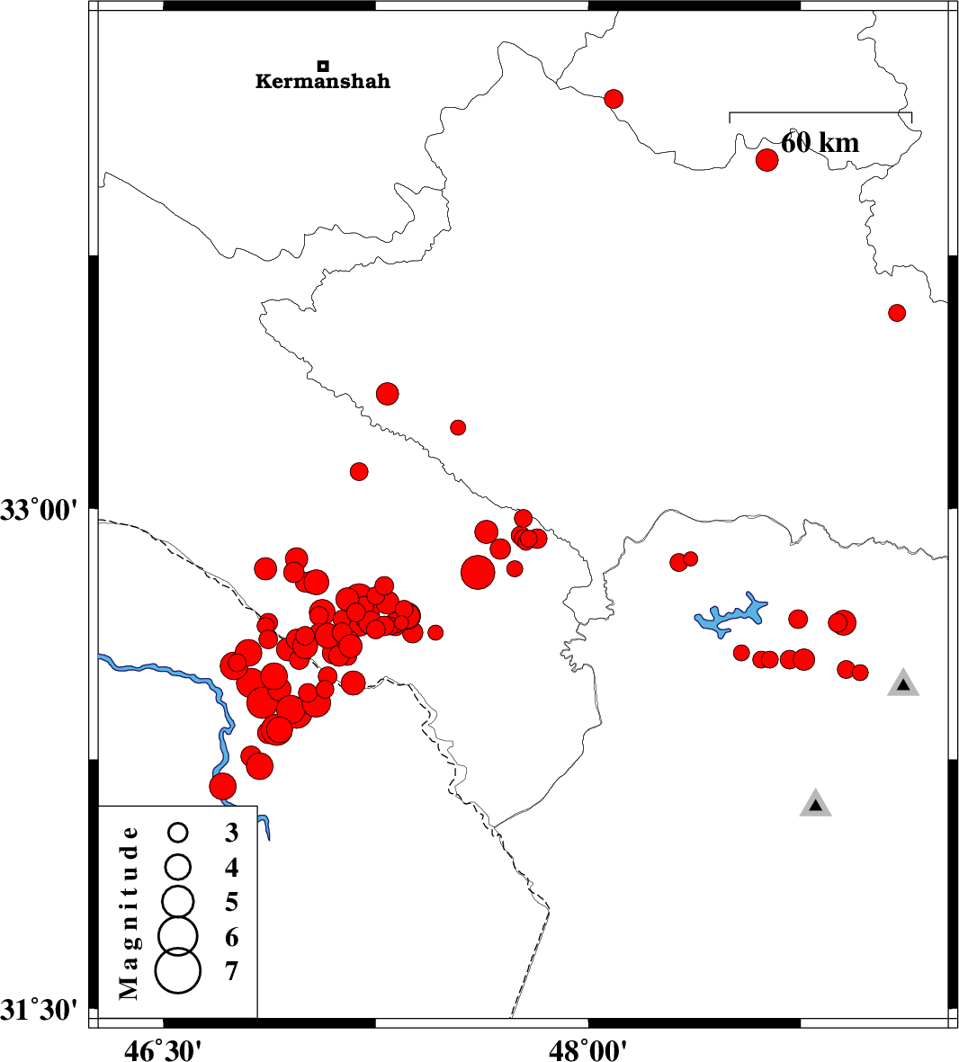 | 2012/05/03 | 11:12:54.3 | 15:42:54.3 | 32.93 | 47.64 | 14 | ML3.6 | Ilam Province, 16 km East of Abdanan | ||