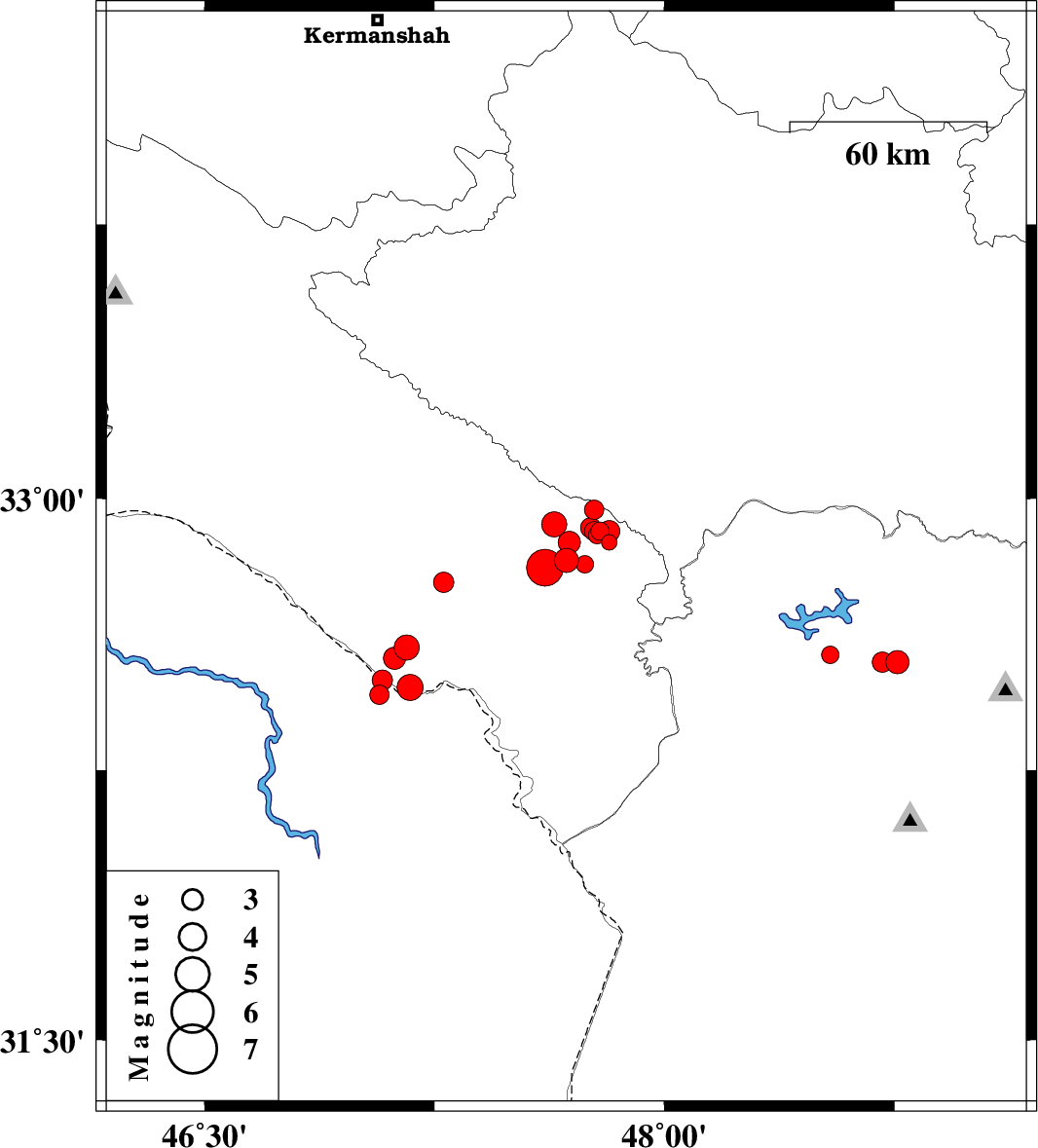 | 2012/05/03 | 11:12:54.3 | 15:42:54.3 | 32.93 | 47.64 | 14 | ML3.6 | Ilam Province, 16 km East of Abdanan | ||