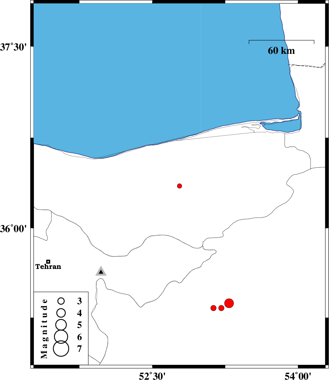 | 2012/04/30 | 01:33:23.3 | 06:03:23.3 | 35.37 | 53.29 | 29 | ML4.2 | Semnan Province, 24 km South-West of Semnan | ||