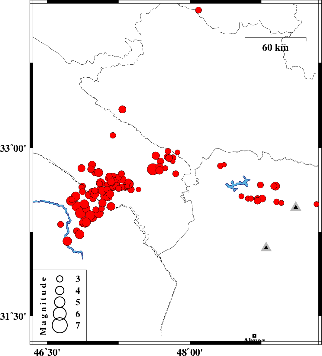 | 2012/05/03 | 10:09:37.3 | 14:39:37.3 | 32.81 | 47.61 | 14 | ML5.4 | Ilam Province, 19 km South-East of Abdanan | ||
