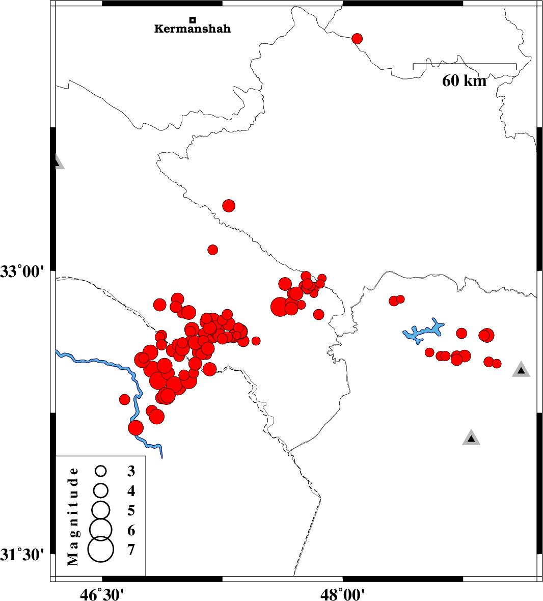 | 2012/05/03 | 11:12:54.3 | 15:42:54.3 | 32.93 | 47.64 | 14 | ML3.6 | Ilam Province, 16 km East of Abdanan | ||