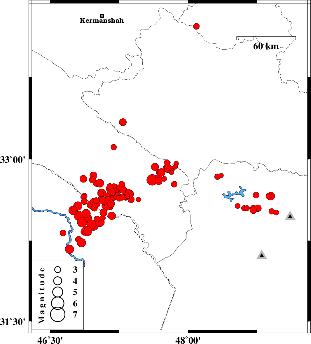 | 2012/05/03 | 11:12:54.3 | 15:42:54.3 | 32.93 | 47.64 | 14 | ML3.6 | Ilam Province, 16 km East of Abdanan | ||