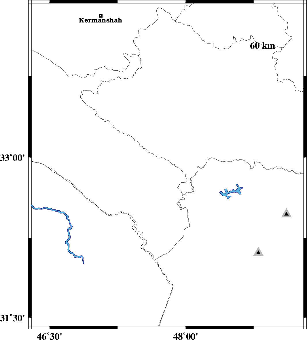| 2012/04/20 | 01:48:42.9 | 06:18:42.9 | 32.6 | 47.15 | 33 | ML4 | Ilam Province, 15 km West of Dehloran | ||