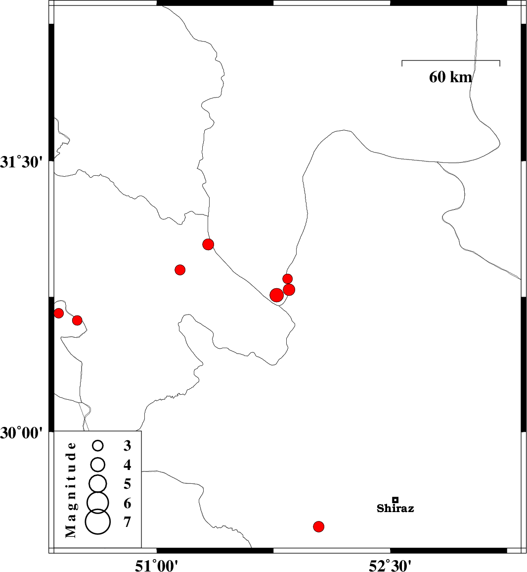 2012/05/07 02:10:25.7 06:40:25.7 29.4752.0414 ML3.1 Fars Province, 41 km South-East of Kazerun