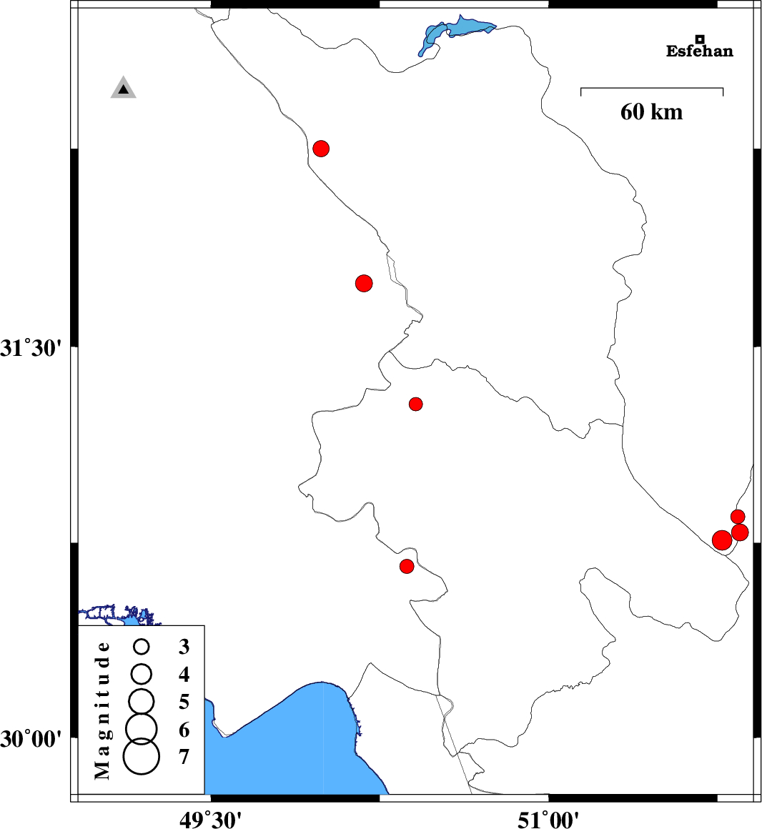 | 2012/05/14 | 18:05:25.7 | 22:35:25.7 | 30.79 | 51.85 | 14 | ML3.4 | Esfahan Province, 30 km North-East of Yasuj | ||