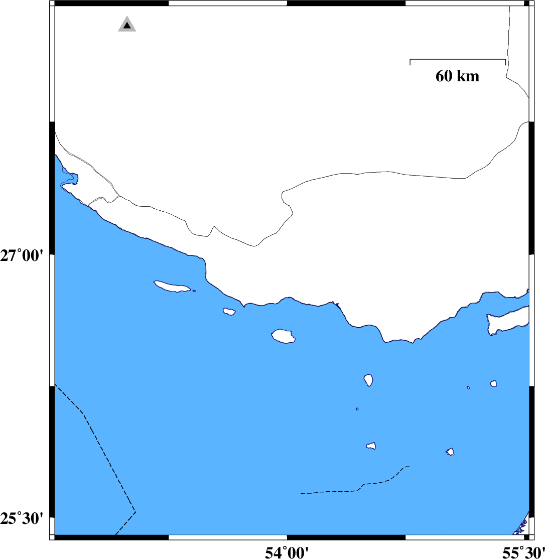 | 2012/05/11 | 06:41:25.4 | 11:11:25.4 | 26.24 | 54.11 | 15 | ML3.1 | Persian Gulf, 81 km South-West of Bandar-e lengeh |