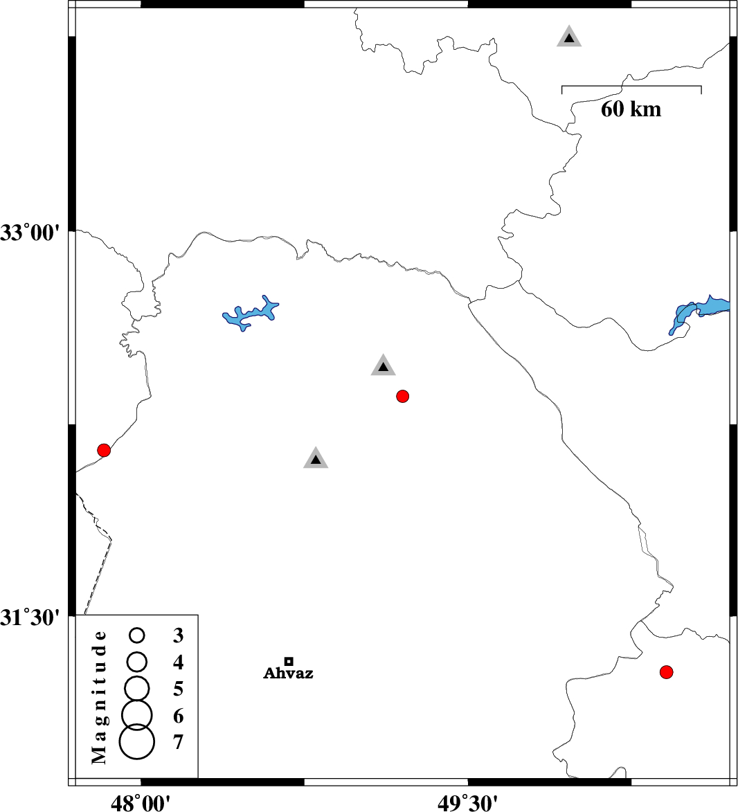 | 2012/05/22 | 00:59:39.8 | 05:29:39.8 | 32.36 | 49.2 | 42 | ML2.5 | Khoozestan Province, 9 km Lali | ||