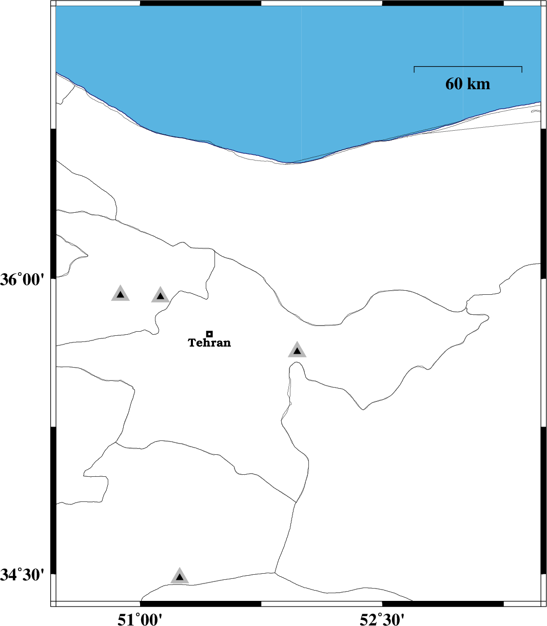 | 2012/04/29 | 14:56:30.1 | 19:26:30.1 | 35.26 | 50.99 | 40 | ML1.5 | Tehran Province, 26 km South of Robatkarim |