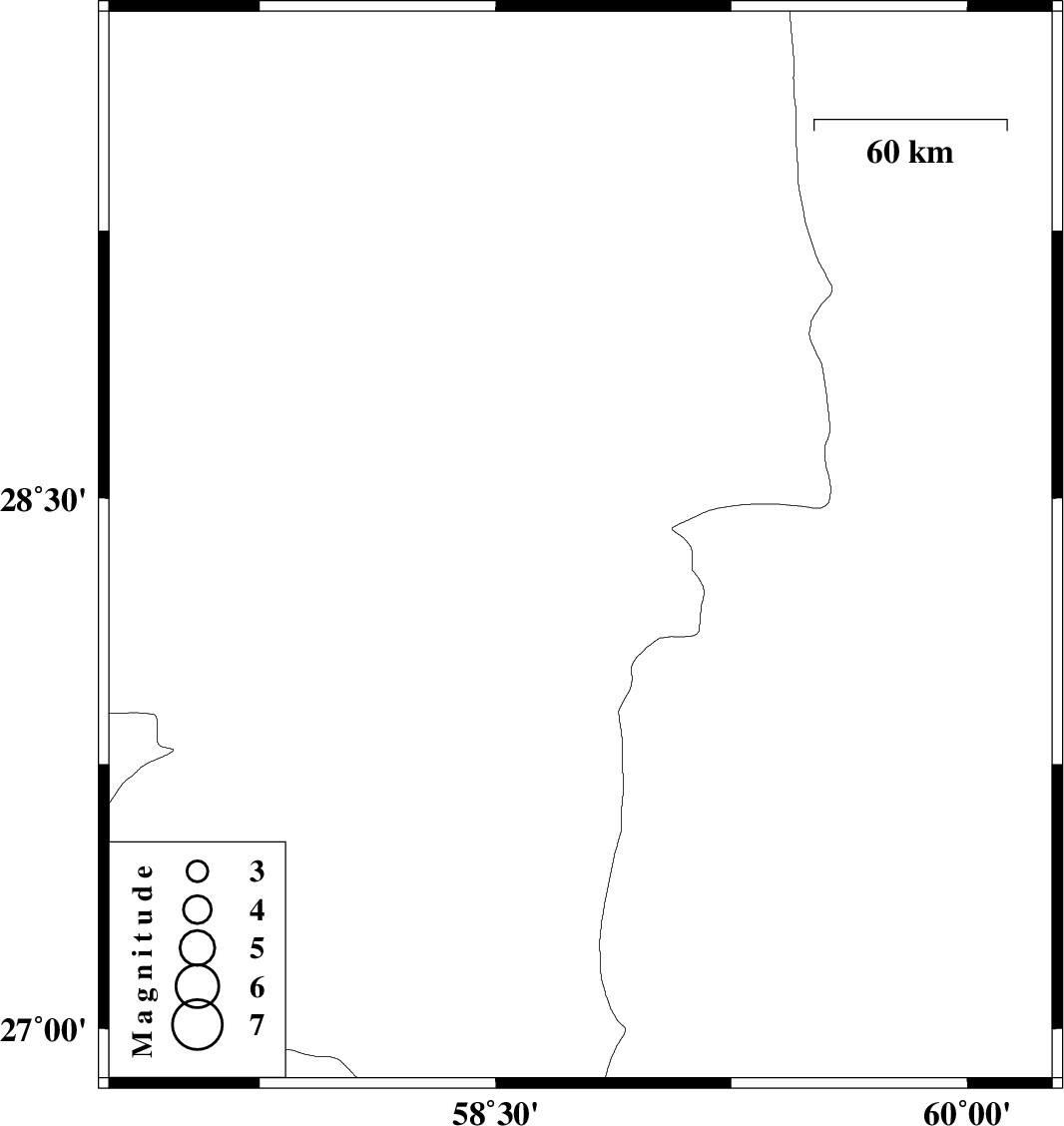 | 2012/05/28 | 10:12:01.8 | 14:42:01.8 | 28.36 | 58.77 | 14 | ML2.7 | Kerman Province, 92 km South-East of Bam |