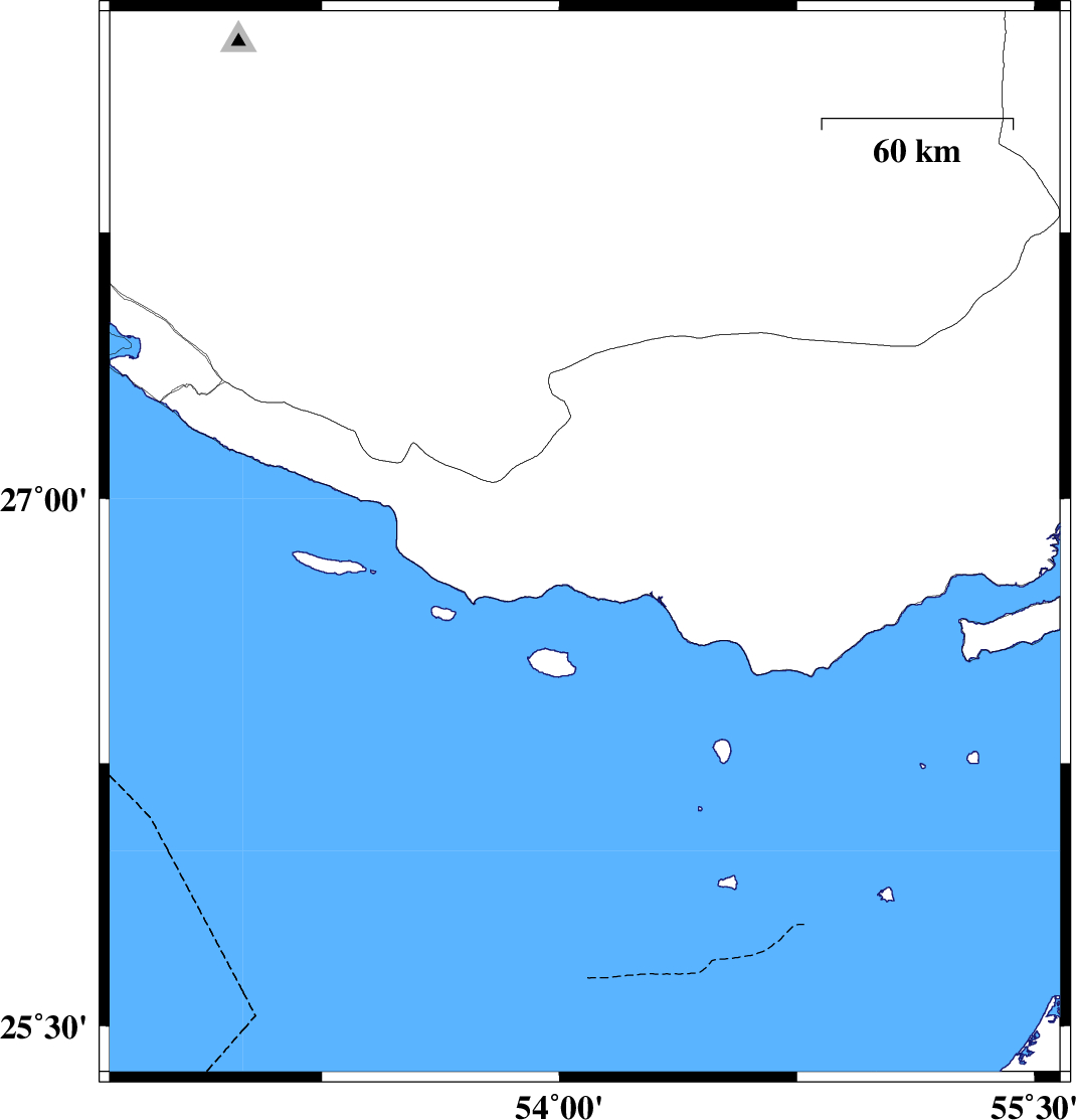 | 2012/05/19 | 12:54:15.7 | 17:24:15.7 | 26.7 | 53.89 | 38 | ML3.4 | Persian Gulf, 73 km South-West of Bastak | ||