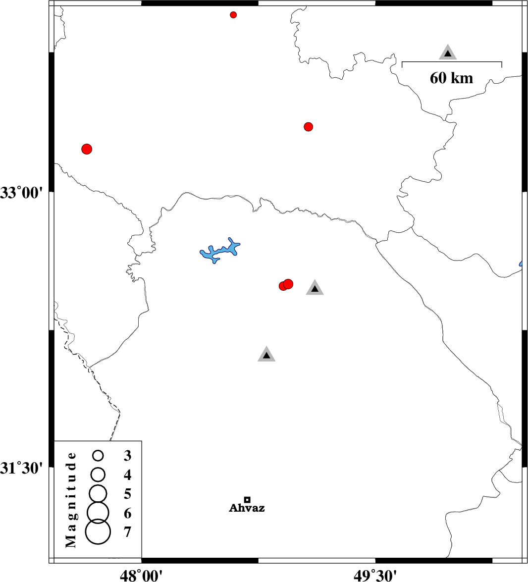 | 2012/06/02 | 02:54:44.3 | 07:24:44.3 | 32.5 | 48.94 | 15 | ML2.8 | Khoozestan Province, 20 km North-West of Lali | ||