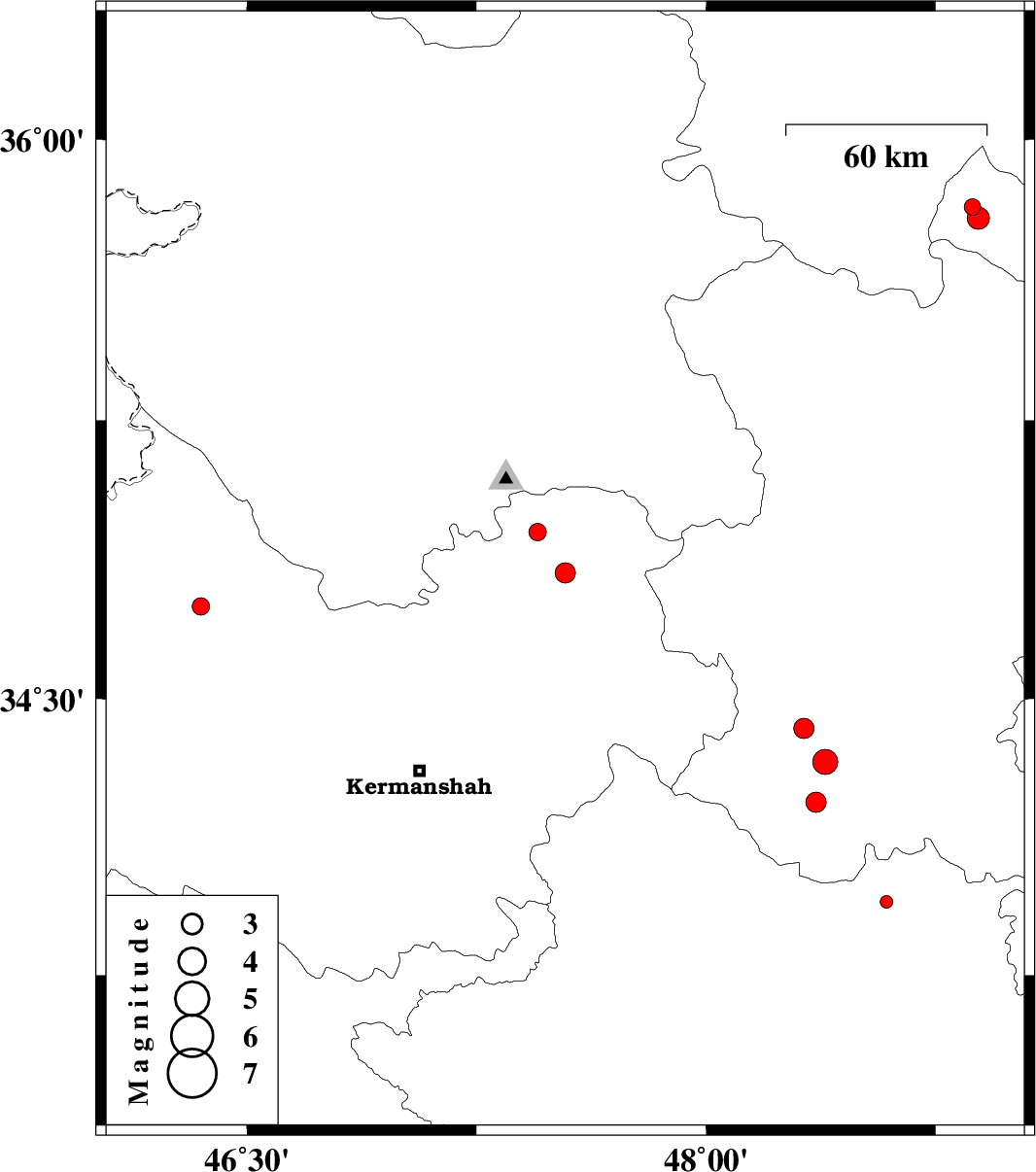 | 2012/05/14 | 13:44:49.9 | 18:14:49.9 | 34.95 | 47.45 | 16 | ML2.6 | Kermanshah Province, 23 km North-West of Sonqor | ||