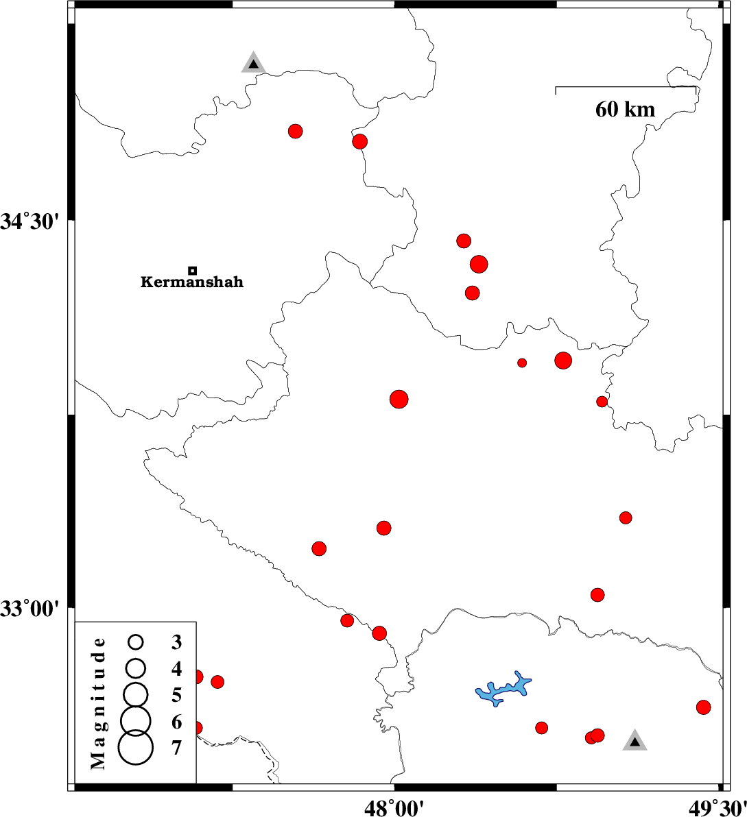 | 2012/06/09 | 19:20:20.4 | 23:50:20.4 | 34.84 | 47.54 | 14 | ML2.9 | Kermanshah Province, 8 km Sonqor | ||