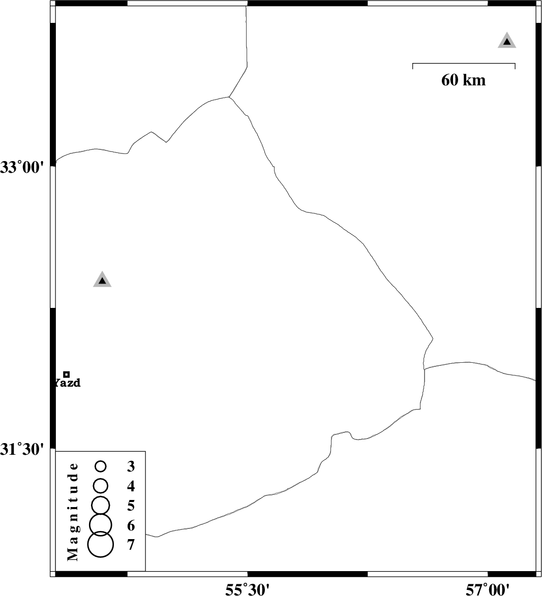 | 2012/06/23 | 05:28:23.4 | 09:58:23.4 | 32.34 | 55.8 | 14 | ML2.6 | Yazd Province, 90 km North-East of Bafq |