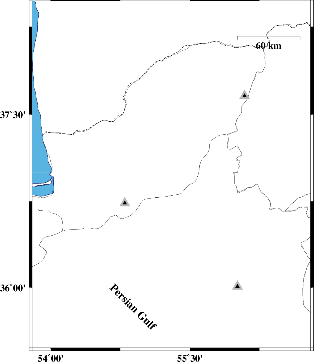 | 2012/06/19 | 07:55:20.8 | 12:25:20.8 | 36.14 | 54.57 | 14 | ML3 | Semnan Province, 20 km East of Damghan |