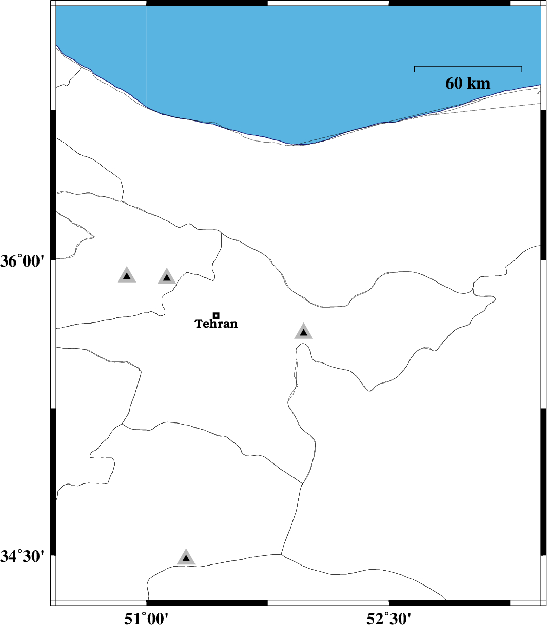 | 2012/07/02 | 04:21:08.3 | 08:51:08.3 | 35.77 | 51.94 | 13 | ML3.7 | Tehran Province, 13 km West of Damavand | ||