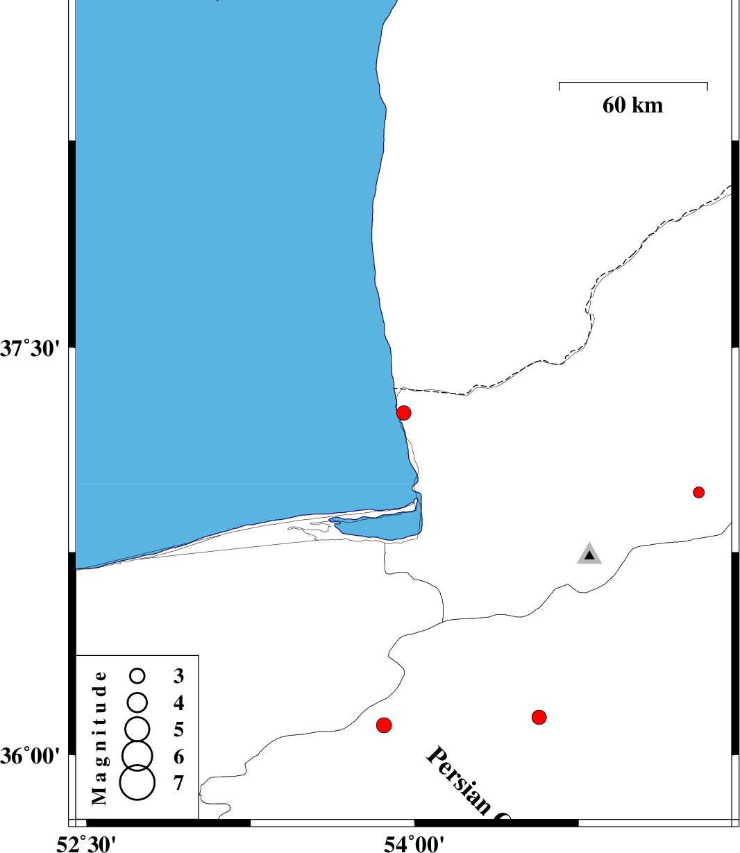 | 2012/07/04 | 07:30:31.8 | 12:00:31.8 | 37.26 | 53.95 | 14 | ML3 | Golestan Province, 42 km North-West of Bandar-e torkaman | ||