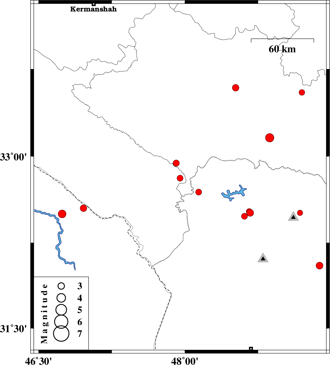 | 2012/07/29 | 21:56:08.7 | 02:26:08.7 | 32.81 | 47.95 | 17 | ML2.8 | Ilam Province, 44 km South-East of Pol-e dokhtar | ||