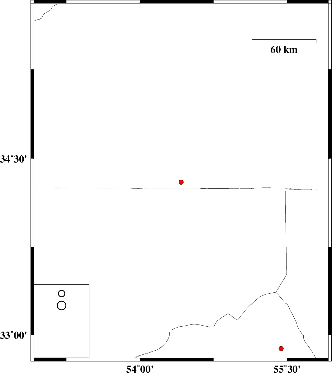 | 2012/07/26 | 23:15:30.0 | 03:45:30.0 | 32.88 | 55.44 | 16 | ML2.1 | Yazd Province, 142 km North of Bafq |
