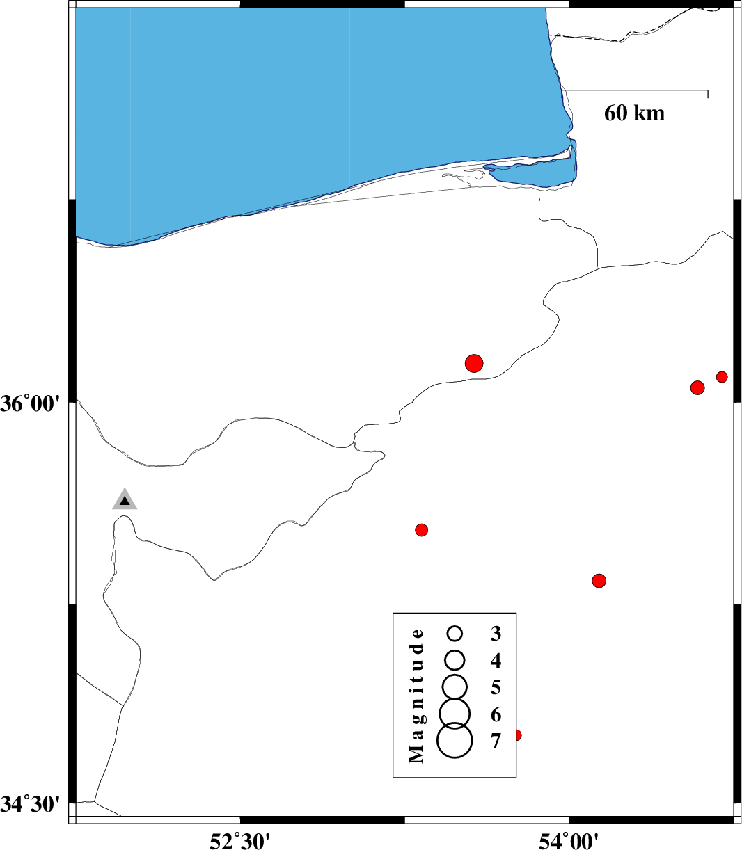 | 2012/07/04 | 07:30:31.8 | 12:00:31.8 | 37.26 | 53.95 | 14 | ML3 | Golestan Province, 42 km North-West of Bandar-e torkaman |
