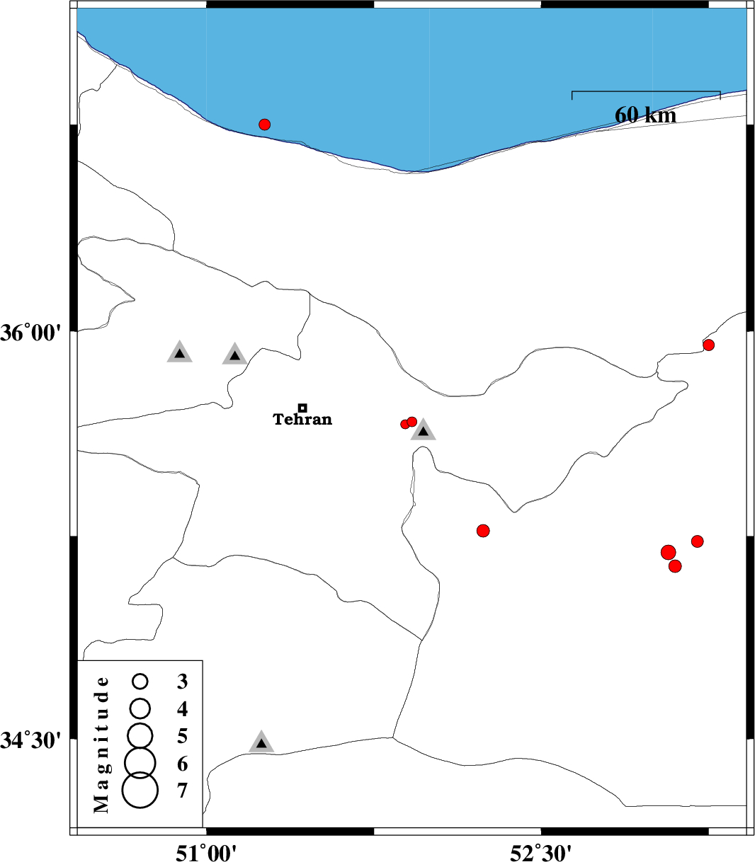 | 2012/08/05 | 13:50:57.4 | 18:20:57.4 | 35.66 | 51.89 | 11 | ML1.9 | Tehran Province, 18 km West of Damavand | ||
