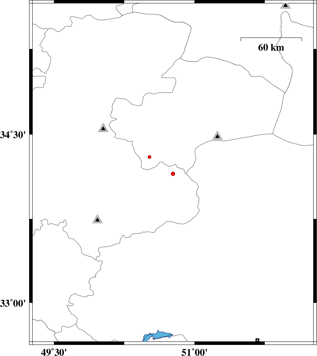 | 2012/08/12 | 12:16:10.3 | 16:46:10.3 | 34.15 | 50.77 | 23 | ML1.8 | Markazi Province, 19 km North of Delijan | ||