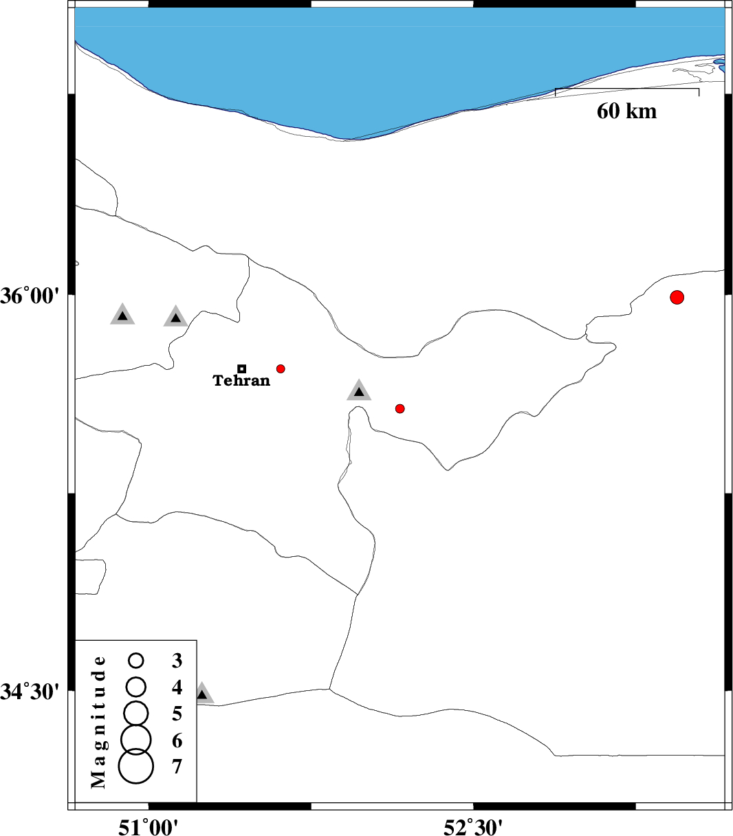 | 2012/08/09 | 08:01:31.8 | 12:31:31.8 | 35.72 | 51.61 | 31 | ML1.7 | Tehran Province, 17 km East of Tajrish |