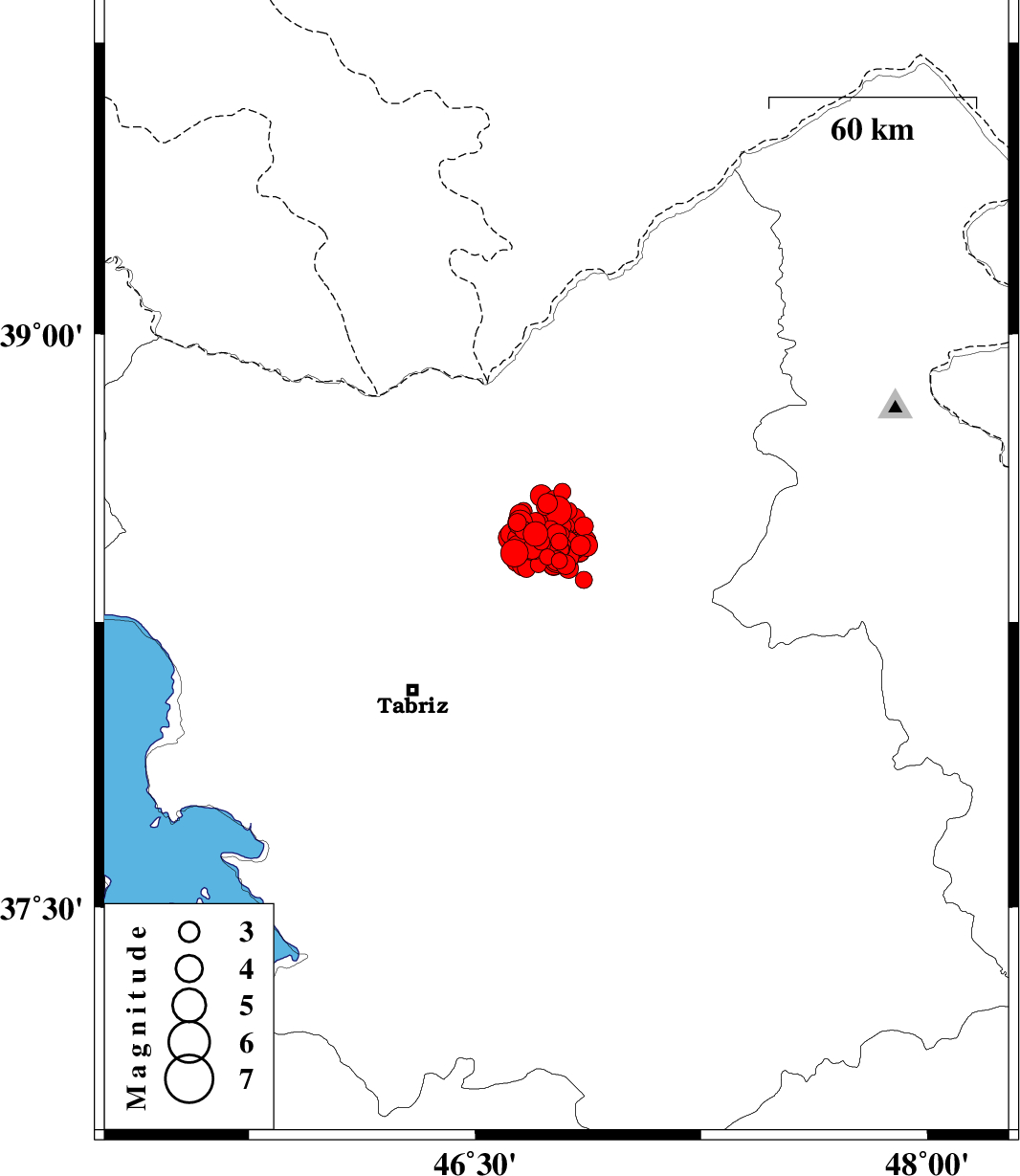 | 2012/08/12 | 06:40:44.8 | 11:10:44.8 | 38.46 | 46.65 | 14 | ML4 | Azarbaijan Sharghi Province, 37 km West of Ahar | ||