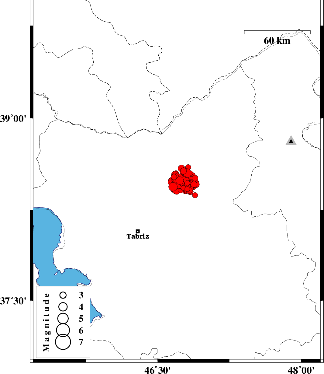| 2012/08/12 | 06:40:44.8 | 11:10:44.8 | 38.46 | 46.65 | 14 | ML4 | Azarbaijan Sharghi Province, 37 km West of Ahar | ||