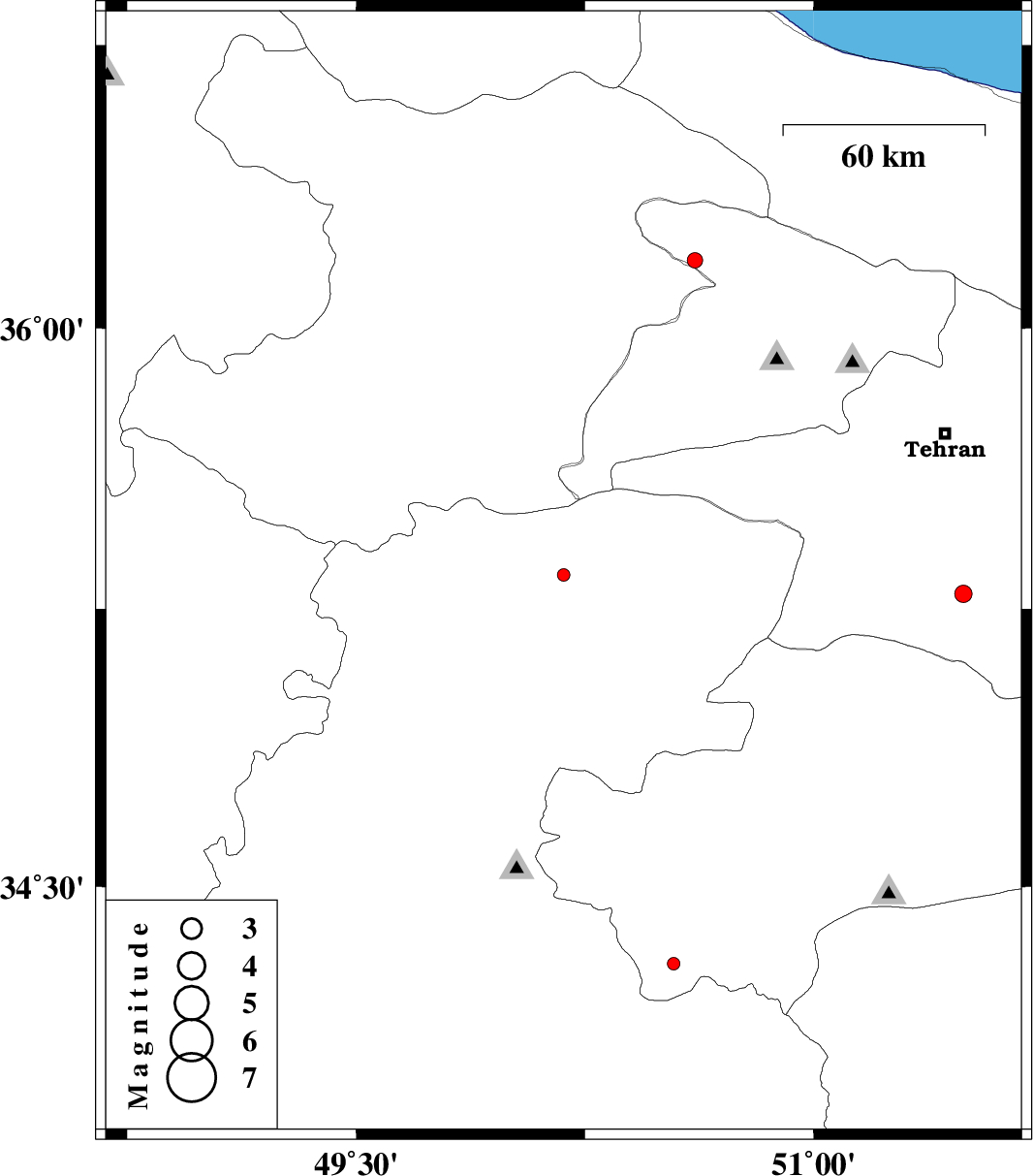 | 2012/08/19 | 11:28:04.3 | 15:58:04.3 | 36.18 | 50.61 | 14 | ML2.2 | Tehran Province, 17 km North of Abyek | ||