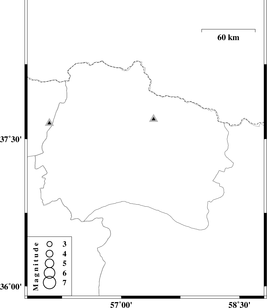 | 2012/08/20 | 16:30:39.7 | 21:00:39.7 | 37.4 | 57.31 | 15 | ML2.4 | Khorasan(north) Province, 9 km Bojnurd |