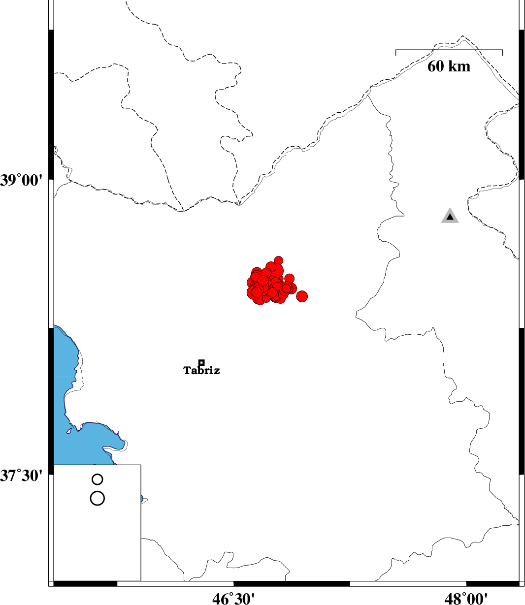 | 2012/08/18 | 15:56:05.7 | 20:26:05.7 | 38.45 | 46.85 | 14 | ML3 | Azarbaijan Sharghi Province, 20 km West of Ahar | ||