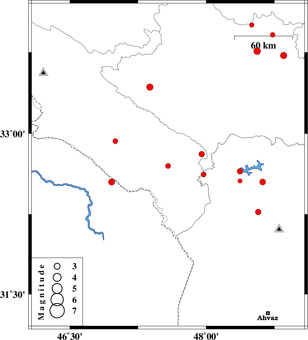 | 2012/08/07 | 03:25:01.5 | 07:55:01.5 | 32.55 | 48.62 | 14 | ML3 | Khoozestan Province, 27 km East of Andimeshk | ||