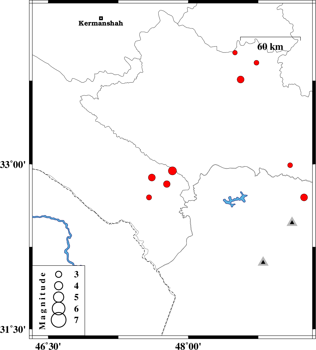 | 2012/08/29 | 12:46:59.7 | 17:16:59.7 | 32.82 | 47.77 | 15 | ML3.2 | Ilam Province, 38 km South of Pol-e dokhtar | ||