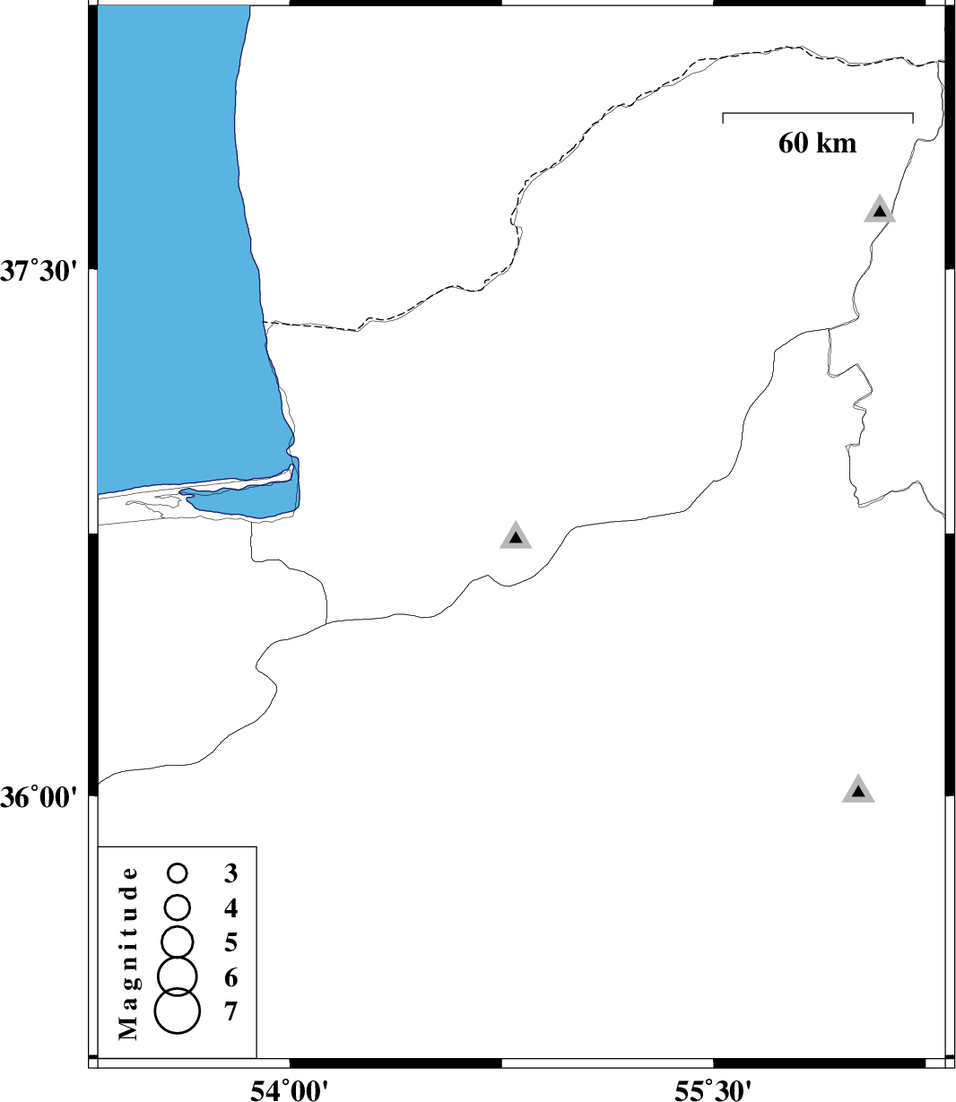 | 2012/08/29 | 23:46:21.5 | 04:16:21.5 | 36.74 | 54.82 | 15 | ML2.5 | Golestan Province, 18 km South of Ali Abad |