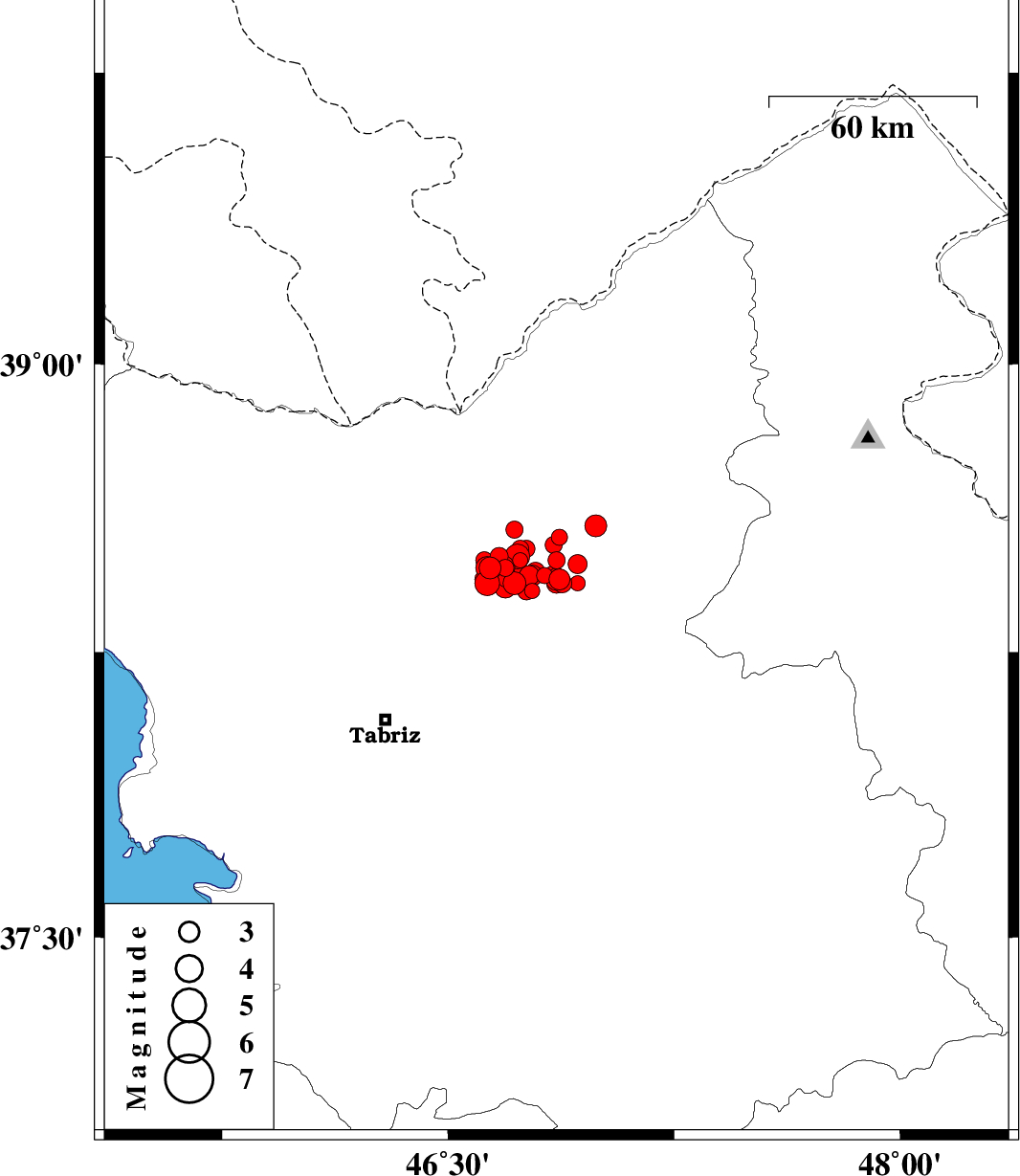 | 2012/08/25 | 06:09:46.2 | 10:39:46.2 | 38.45 | 46.67 | 14 | ML3 | Azarbaijan Sharghi Province, 36 km West of Ahar | ||