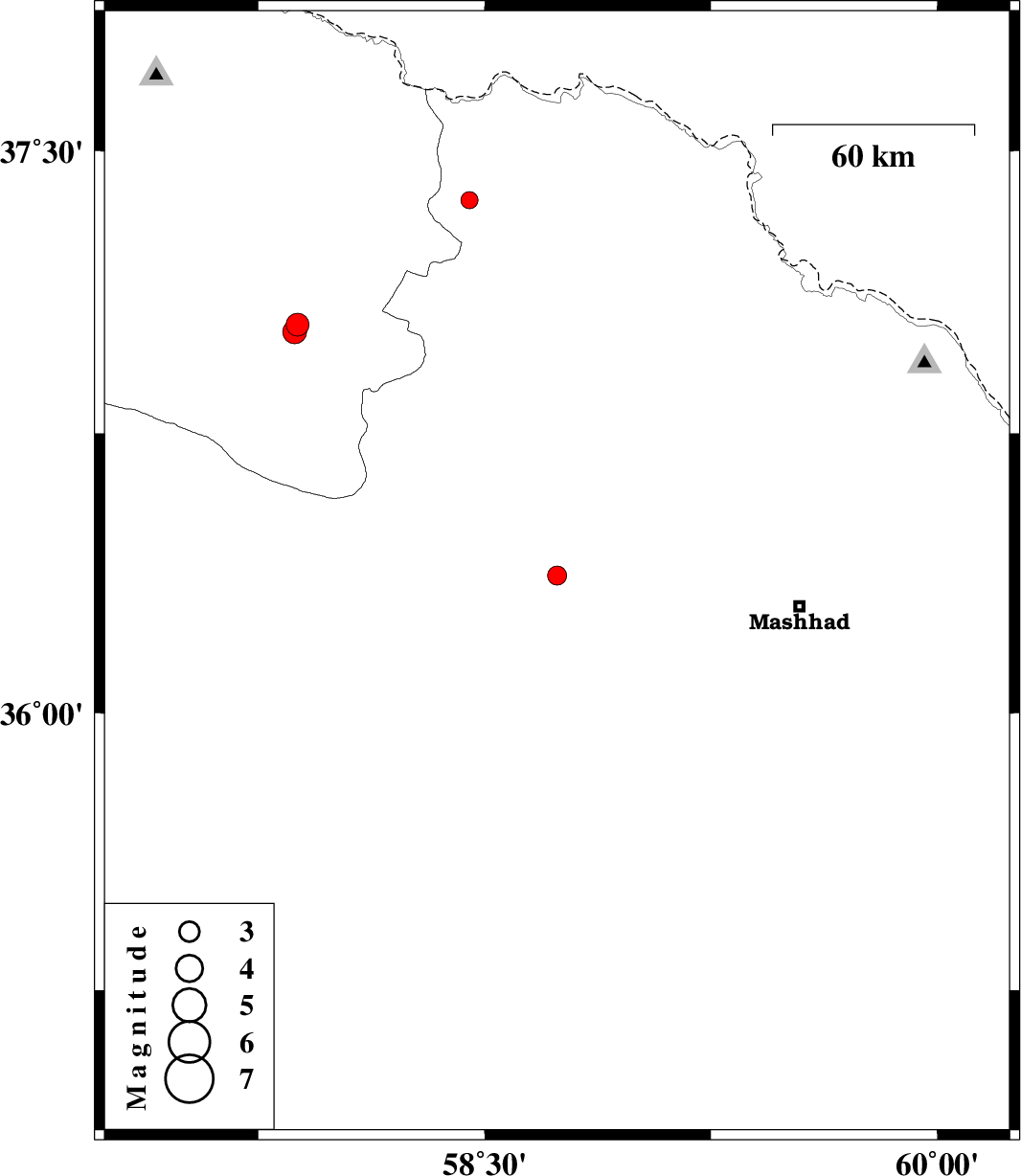 | 2012/08/27 | 15:40:16.3 | 20:10:16.3 | 37.37 | 58.45 | 14 | ML2.6 | Khorasan(center) Province, 29 km North of Quchan | ||