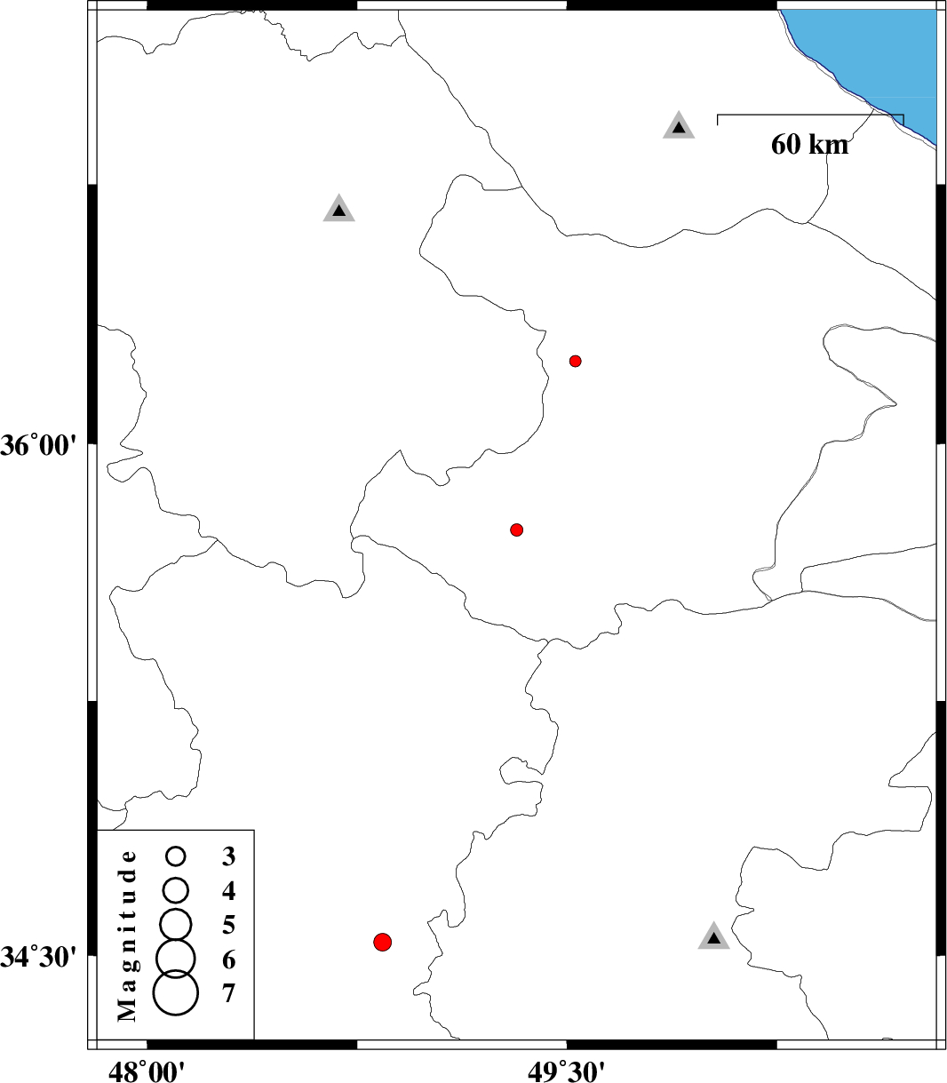 | 2012/08/30 | 13:37:52.4 | 18:07:52.4 | 34.54 | 48.84 | 32 | ML2.8 | Hamedan Province, 27 km North of Malayer | ||